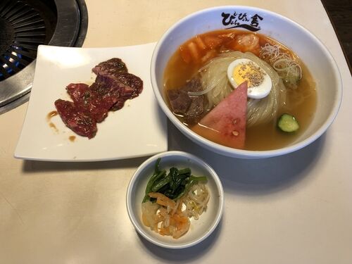 岩手県交通の「稲荷町」バス停にやって来たわ! この近くに盛岡冷麺有名チェーンのぴょんぴょん舎の本店があると言われて連れて来られたわ! 『ぴょんぴょん舎 稲荷町本店』にやって来たわ メニュー 牛焼肉セット タレ カルビ ハラミ モモ ナムル 冷麺 店舗…
