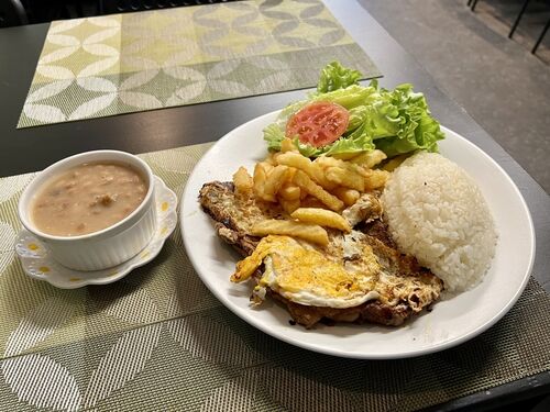 名鉄名古屋本線の牛田駅にやって来たわ! この駅の近くにガチのブラジル料理屋があるからって連れて来られたわ! それでそのお店はどこにあるのかしら? 『Cheiro verde(チェイロ・ヴェルデ)』にやって来たわ! メニュー Bife à Cavalo(ビフェ・ア・カバ…