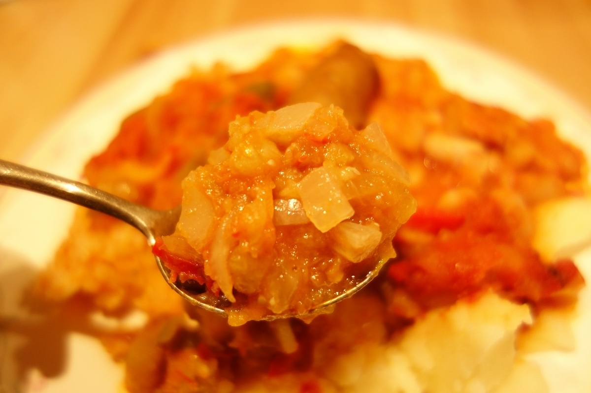 しっかりと煮込まれていて、ピーマンと玉ねぎがしんなりとなるまで煮込まれていて、野菜の旨みと甘味が出ているわね!