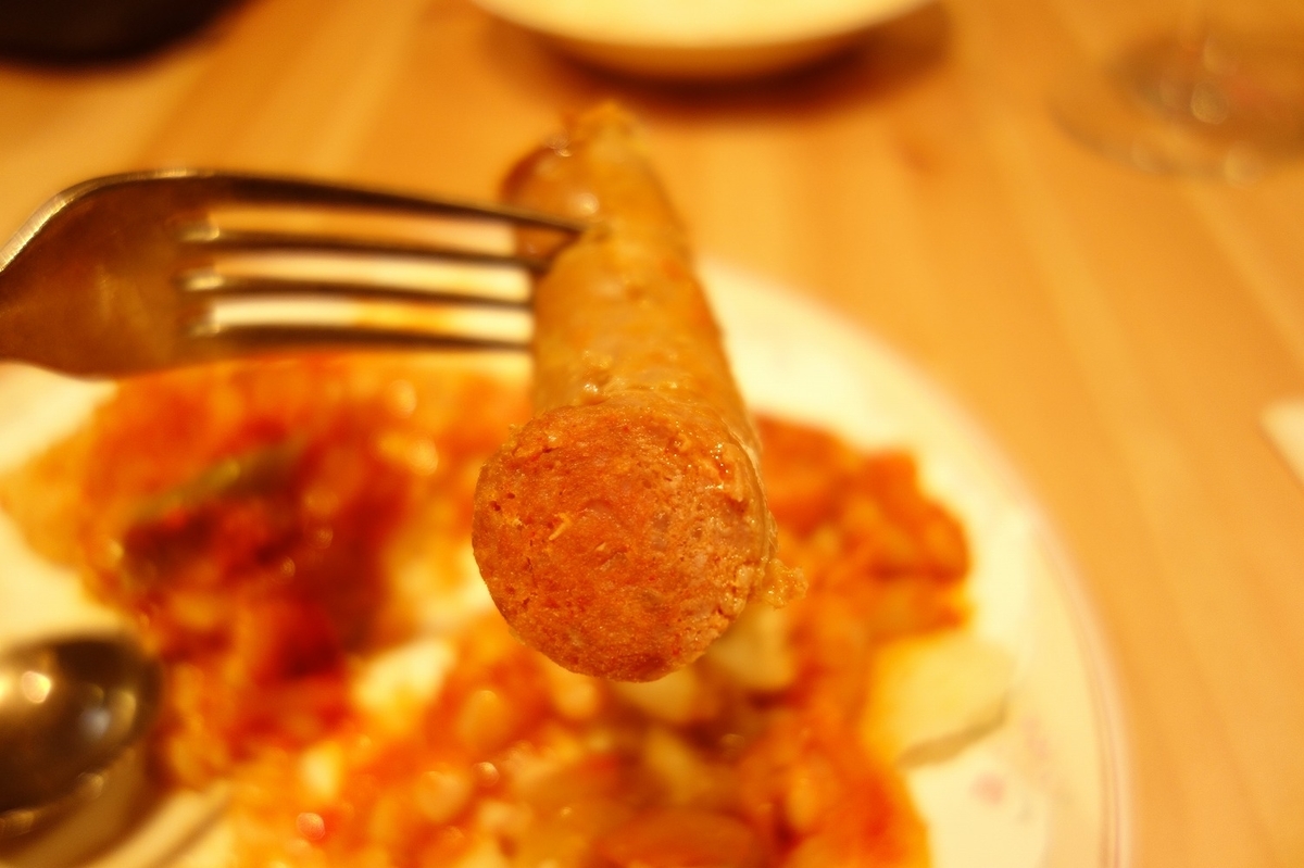 ソーセージは、ピリっと辛くてスパイスが効いていてスパイシーだったわ!